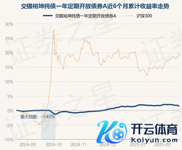 本站音信,2月21日,交银裕坤纯债一年按时盛开债券A最新单元净值为1.0904元,累计净值为1.1764元,较前一交昔时下落0.16%。历史数据清晰该基金近1个月下落0.17%,近3个月高潮1.75%,近6个月高潮1.51%开云kaiyun官方网站,近1年高潮3.79%。该基金近6个月的累计收益率走势如下图: